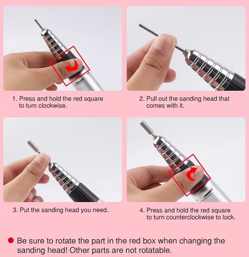 Бұл 35 000 айн / мин электрлік портативті гельді тырнақ бұрғысын ауыстыру бұрғысының жұмыс әдісі, яғни аша және шығарып алу, оңай және ыңғайлы ауыстыруды аяқтағаннан кейін пайдалануға болады.