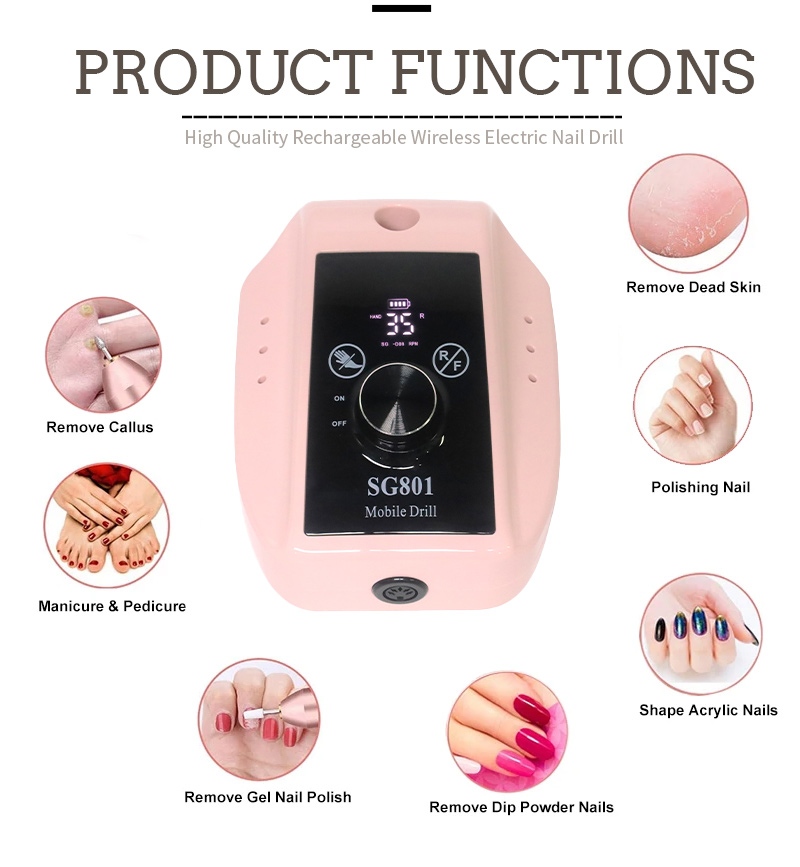 Бұл 35 000 айн / мин электр портативті гель тырнақ бұрғысының таңдауға болатын 2 түсі бар, қара/ақ/сұр/көк/қызыл/қызғылт/қызғылт сары, түрлі-түсті түстер.