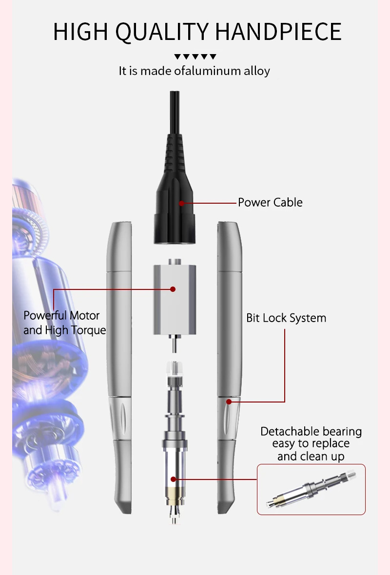 Тырнақ бұрғылары жинағы Электрлік файл кәсіби 65w 35000 айн/мин