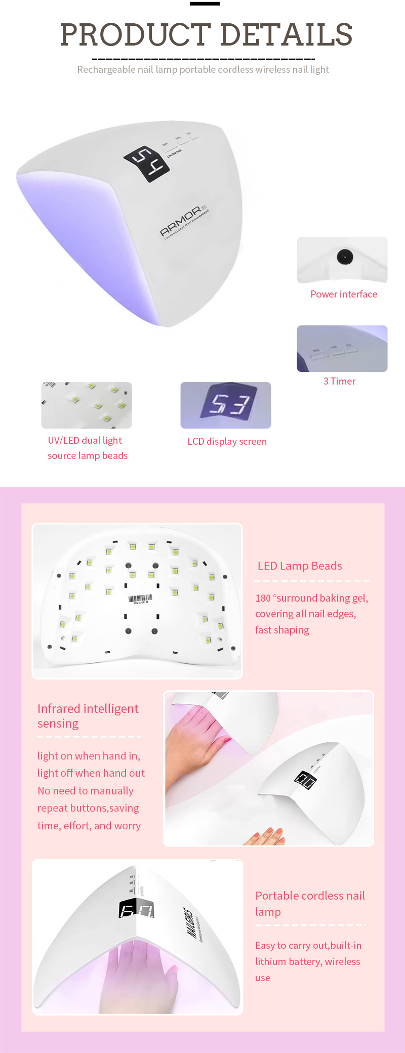 Тырнаққа арналған лампалар Өнімнің мүмкіндіктері мен қосымшалары