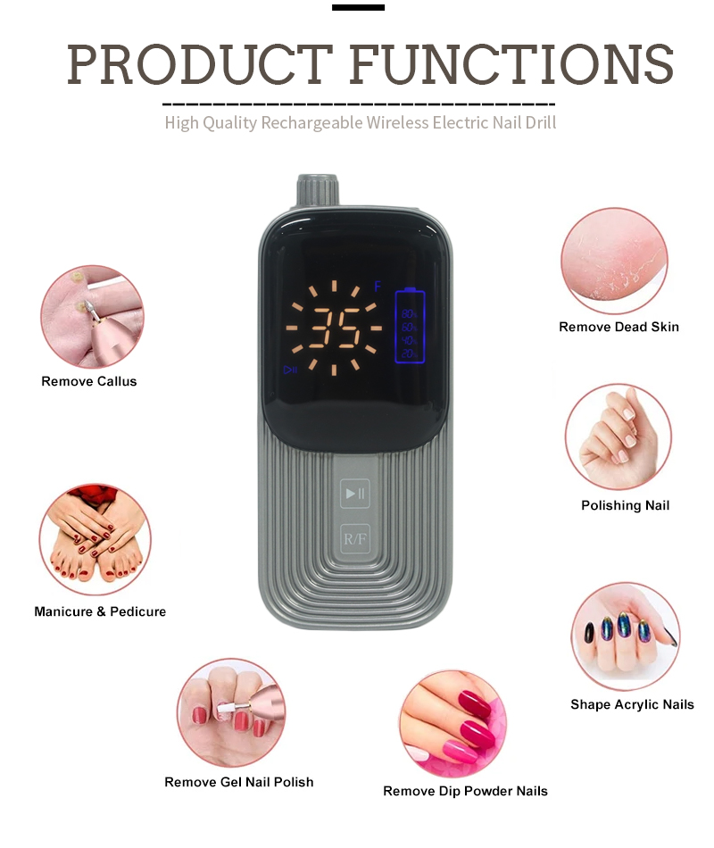 Гель-лак кетіруге арналған электрлік тырнақ бұрғы жинағы 65w 35000айн/мин