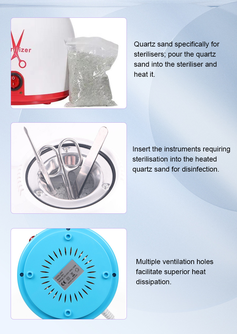 Бұл стерилизатор, ең алдымен, дезинфекцияға арналған жоғары температураны пайдаланатын жылыту сақинасы арқылы жылуды жасайды.