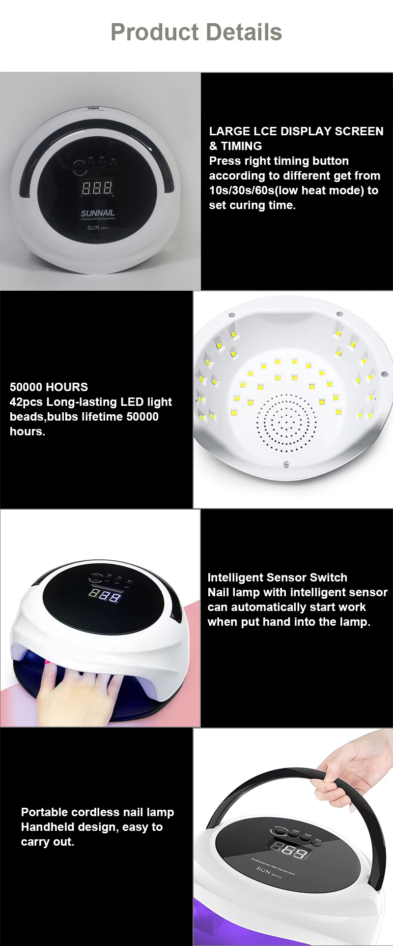 Біздің негізгі өнімдерімізге жарықдиодты тырнақ шамдары кіреді: