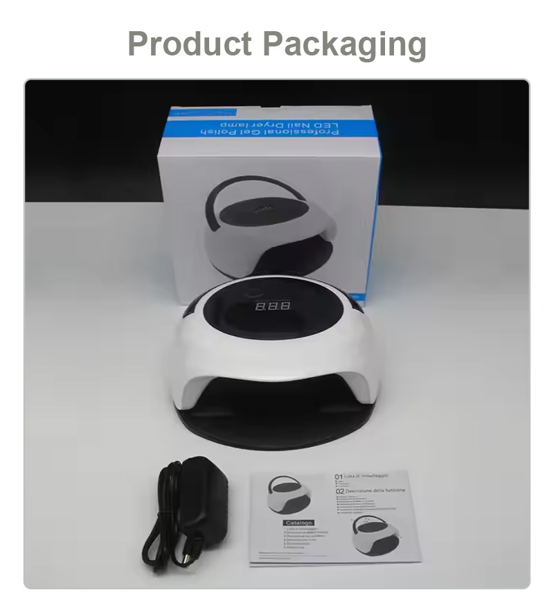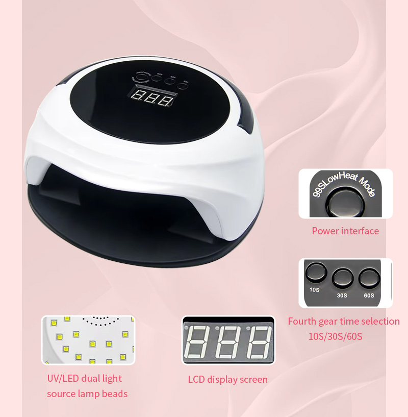 Автоматты сенсор функциясы бар тырнақты кептіруге арналған шам желімнің біркелкі кептірілуін қамтамасыз етеді. Оның қос жарық көздері қолдың түсінің өзгеруін және көздің шаршауын болдырмау үшін жұмсақ қыздыруды қамтамасыз етеді, екі қол мен аяққа жарамды, керемет жылдам кептіру нәтижелерін береді.