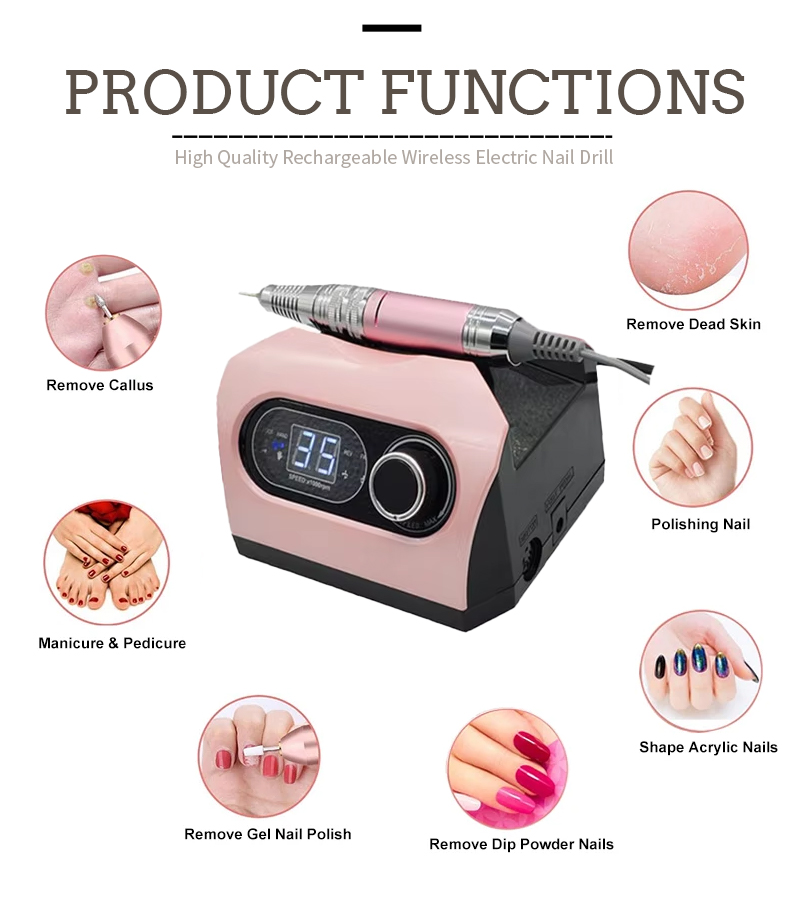 Гель-лак кетіруге арналған электрлік тырнақ бұрғы жинағы 65w 35000айн/мин