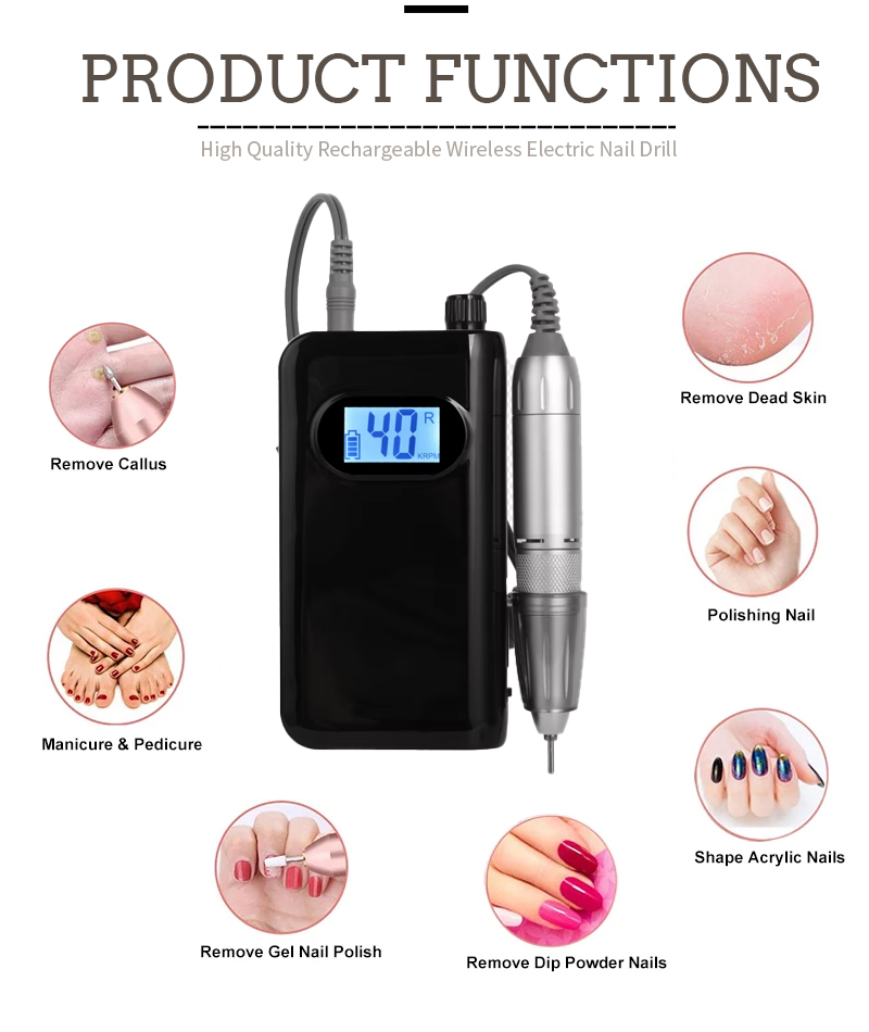 Гель-лак кетіруге арналған электрлік тырнақ бұрғы жинағы 65w 35000айн/мин