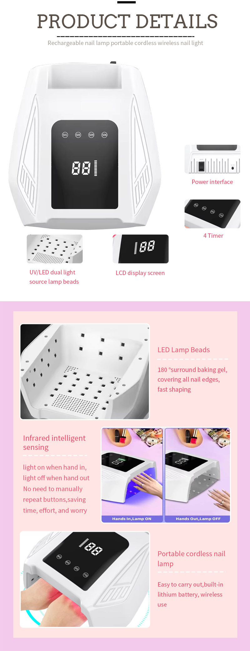 Қайта зарядталатын гель тырнақ кептіргіш шамы 96w