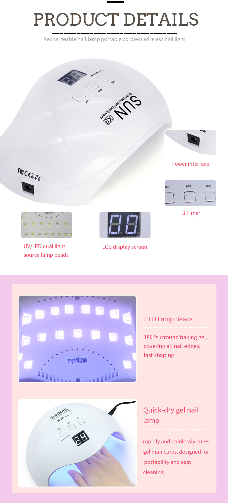 Қайта зарядталатын гель тырнақ кептіргіш шамы 96w